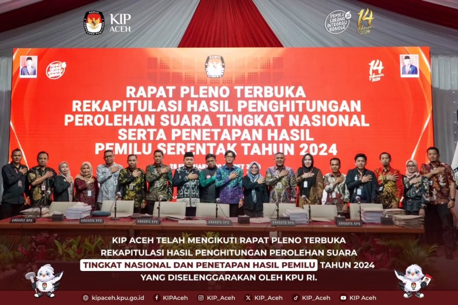 Saleum #TemanPemilih KIP Aceh ikuti Rapat Pleno Terbuka Rekapitulasi Hasil Penghitungan Perolehan Suara Tingkat Nasional serta Penetapan Hasil Pemilu Tahun 2024, Jakarta, Jumat (15/03).