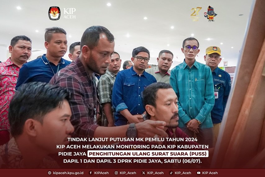Anggota KPU RI Idham Holik turut memantau langsung pelaksanaan tindak lanjut Putusan Mahkamah Konstitusi (MK) Pemilu Tahun 2024 terkait PUSS di Kabupaten Pidie Jaya.