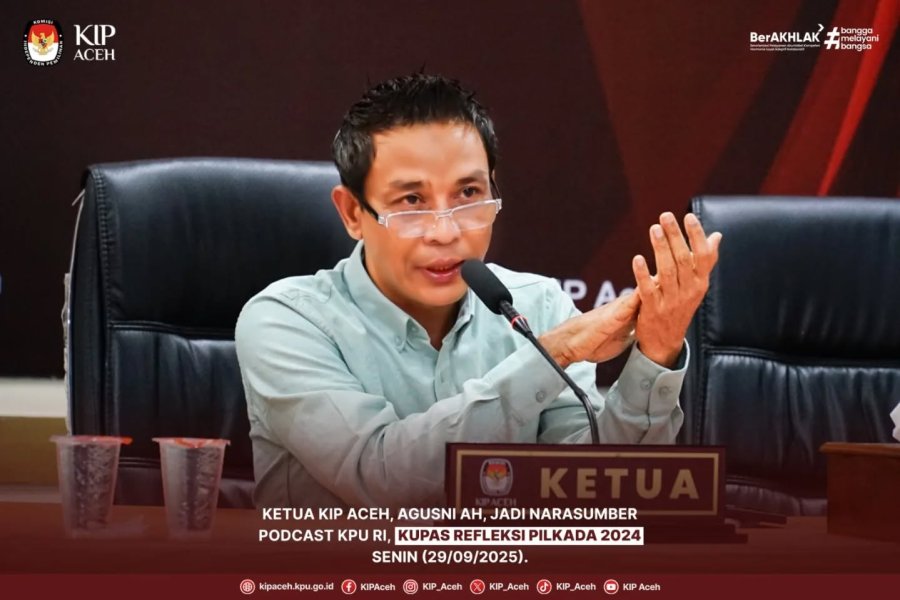 Saleum #TemanPemilih Ketua KIP Aceh, Agusni AH, menjadi narasumber dalam Podcast KPU RI pada Senin (29/09/2025). Pada kesempatan tersebut, Agusni membahas buku Refleksi Kinerja KIP Aceh dalam menyukseskan penyelenggaraan Pilkada Tahun 2024.