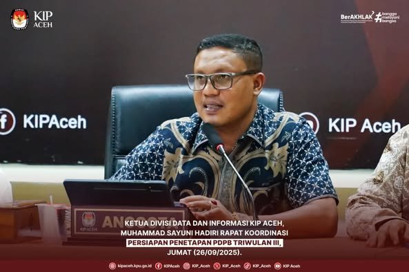 Saleum #TemanPemilih Ketua Divisi Data dan Informasi KIP Aceh, Muhammad Sayuni menghadiri Rapat Koordinasi Persiapan Penetapan Data Pemilih Berkelanjutan (PDPB) Triwulan III Tahun 2025 bersama KPU RI dan seluruh KPU/KIP se-Indonesia, Jumat (26/09/2025).