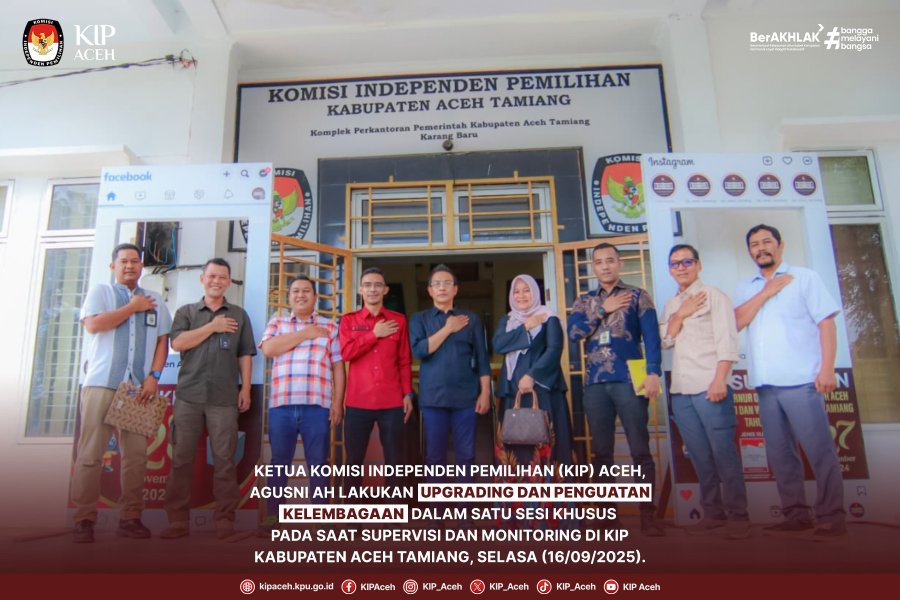 Saleum #TemanPemilih Ketua Komisi Independen Pemilihan (KIP) Aceh, Agusni AH lakukan upgrading dan penguatan kelembagaan dalam satu sesi khusus pada saat supervisi dan monitoring di KIP Kabupaten Aceh Tamiang, Selasa (16/09/2025).