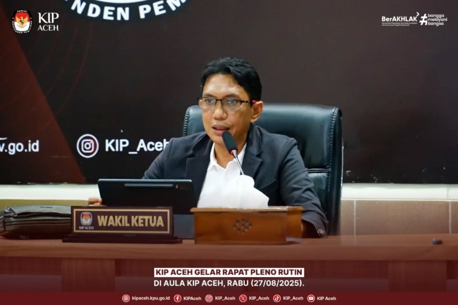 Saleum #TemanPemilih Komisi Independen Pemilihan (KIP) Aceh menggelar rapat pleno rutin di Aula KIP Aceh, Rabu (27/08/2025).