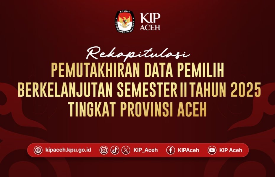 Saleum #TemanPemilih KIP Aceh telah melaksanakan Rapat Pleno Terbuka Rekapitulasi Pemutakhiran Data Pemilih Berkelanjutan (PDPB) Semester II Tahun 2025 Tingkat Provinsi Aceh pada Jumat, 12 Desember 2025. Kegiatan ini menjadi bagian penting dalam memastikan data pemilih yang akurat, mutakhir, dan berkelanjutan di seluruh wilayah Aceh.