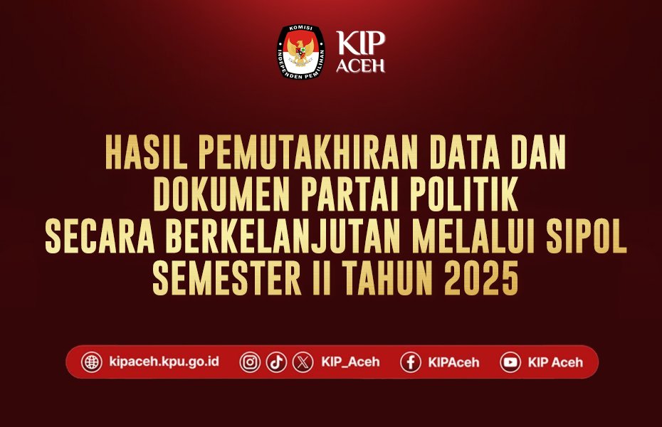 KIP Aceh menyampaikan hasil pemutakhiran data dan dokumen Partai Politik secara berkelanjutan melalui Sistem Informasi Partai Politik (Sipol) semester II Tahun 2025.