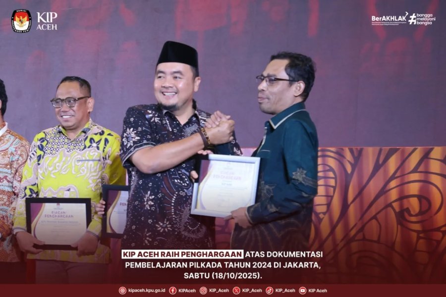 Penghargaan ini menjadi bentuk apresiasi atas komitmen KIP Aceh dalam mendokumentasikan berbagai proses, inovasi, serta praktik dalam penyelenggaraan Pilkada 2024, sehingga dapat dijadikan pembelajaran bagi pelaksanaan di masa mendatang.