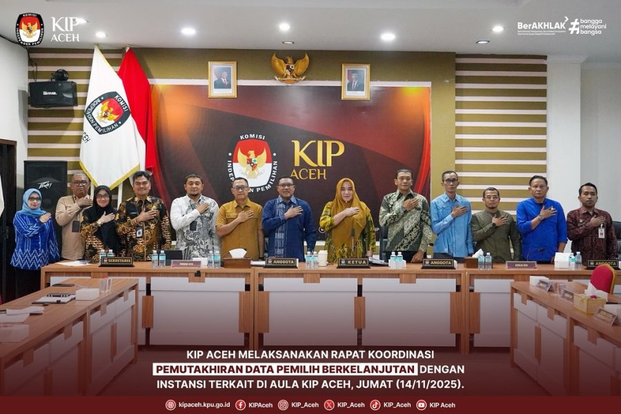 Saleum #TemanPemilih Komisi Independen Pemilihan (KIP) Aceh melaksanakan kegiatan Rapat Koordinasi Pemutakhiran Data Pemilih Berkelanjutan dengan Instansi Terkait di Aula KIP Aceh, pada Jumat (14/11/2025).