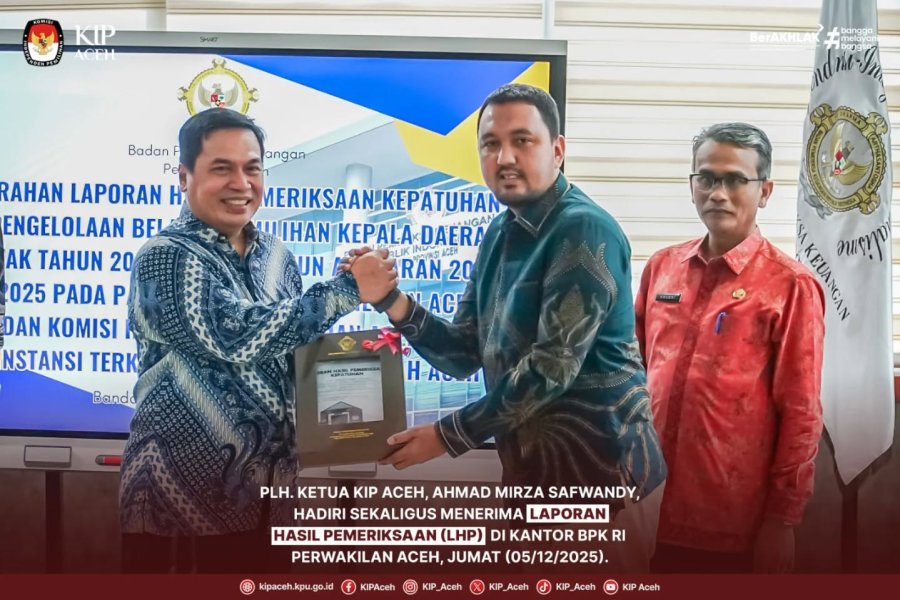 Plh. Ketua KIP Aceh, Ahmad Mirza Safwandy, menghadiri sekaligus menerima Laporan Hasil Pemeriksaan (LHP) di Kantor Badan Pemeriksa Keuangan (BPK) RI Perwakilan Aceh, Jumat (05/12/2025). Kegiatan ini menjadi bagian dari mekanisme akuntabilitas dan transparansi penyelenggaraan anggaran pada instansi pemerintah, termasuk KIP Aceh.