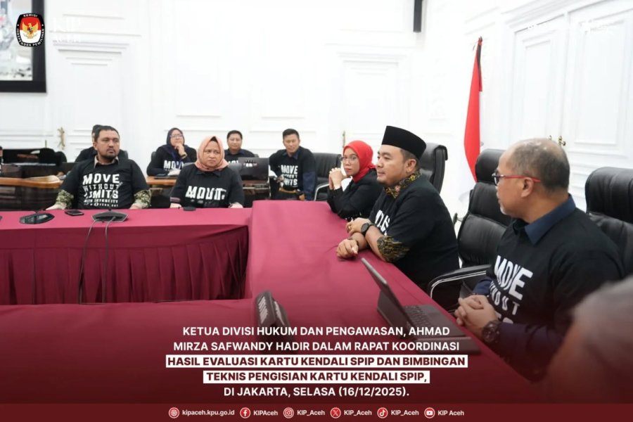 Saleum #TemanPemilih Ketua Divisi Hukum dan Pengawasan KIP Aceh, Ahmad Mirza Safwandy, menghadiri Rapat Koordinasi (Rakor) Hasil Evaluasi Kartu Kendali Sistem Pengendalian Intern Pemerintah (SPIP) serta Bimbingan Teknis Pengisian Kartu Kendali SPIP, Selasa (16/12/2025), di Jakarta.