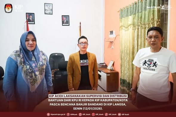 Ketua Komisi Independen Pemilihan (KIP) Aceh, Agusni AH, bersama Wakil Ketua KIP Aceh, Iskandar Agani, Ketua Divisi Perencanaan dan Logistik KIP Aceh, Khairunnisak, dan Sekretaris KIP Aceh, T. Joan Virgianshah melaksanakan Monitoring pelaksanaan kegiatan pada KIP Kabupaten dan Kota Pasca Bencana Alam Hidrometeorologi di Aceh bertempat di KIP Langsa pada Senin (12/01/2026).