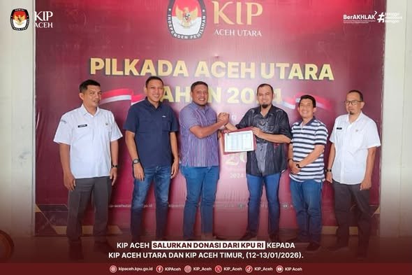 Komisi Independen Pemilihan (KIP) Aceh menyampaikan sumbangan donasi dari Komisi Pemilihan Umum (KPU) RI kepada KIP Kabupaten Aceh Utara dan KIP Kabupaten Aceh Timur sebagai bentuk kepedulian dan solidaritas kelembagaan.