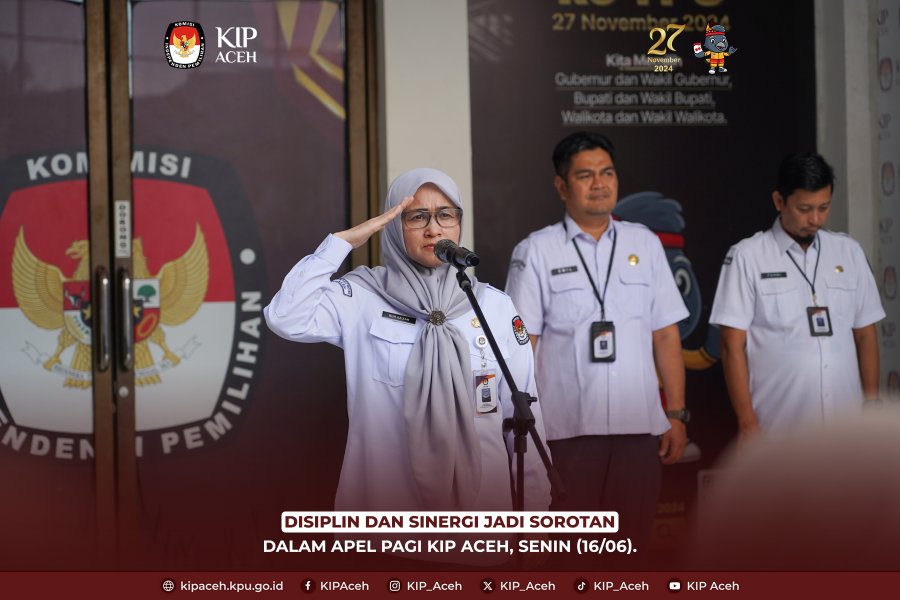 Saleum #TemanPemilih Komisi Independen Pemilihan (KIP) Aceh melaksanakan apel rutin di halaman kantor setempat pada Senin (16/06). Kegiatan ini merupakan bagian dari upaya pembinaan dan penguatan kedisiplinan serta semangat kerja pegawai di lingkungan KIP Aceh.