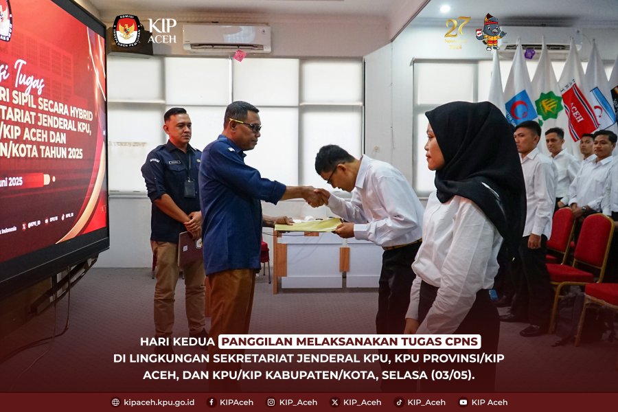 hari kedua dalam rangkaian Panggilan Melaksanakan Tugas Calon Pegawai Negeri Sipil (CPNS) di lingkungan Sekretariat Jenderal KPU, KPU Provinsi/KIP Aceh, dan KPU/KIP Kabupaten/Kota