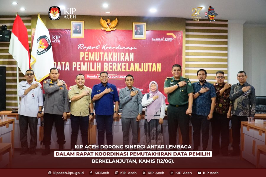Saleum #TemanPemilih Komisi Independen Pemilihan (KIP) Aceh melaksanakan Rapat Koordinasi Pemutakhiran Data Pemilih Berkelanjutan (PDPB) di Aula KIP Aceh. Kegiatan ini bertujuan untuk memperkuat komitmen dalam menjaga akurasi dan validitas data pemilih secara berkelanjutan, sebagai langkah penting menuju penyelenggaraan pemilu yang transparan dan partisipatif.