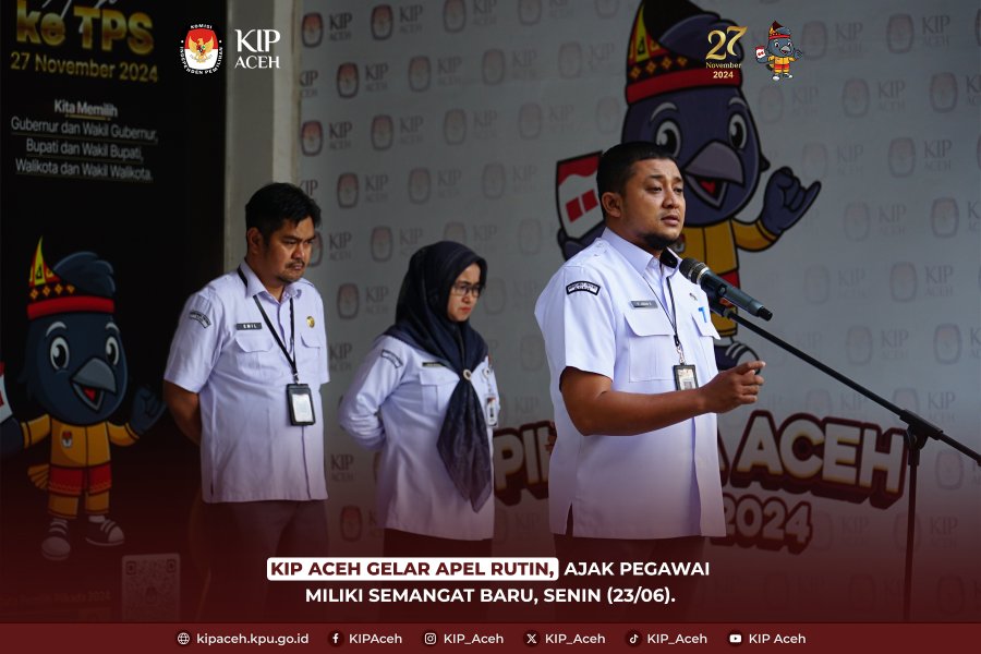 Saleum #TemanPemilih Komisi Independen Pemilihan (KIP) Aceh melaksanakan apel rutin di halaman kantor setempat pada Senin (23/06/2025).