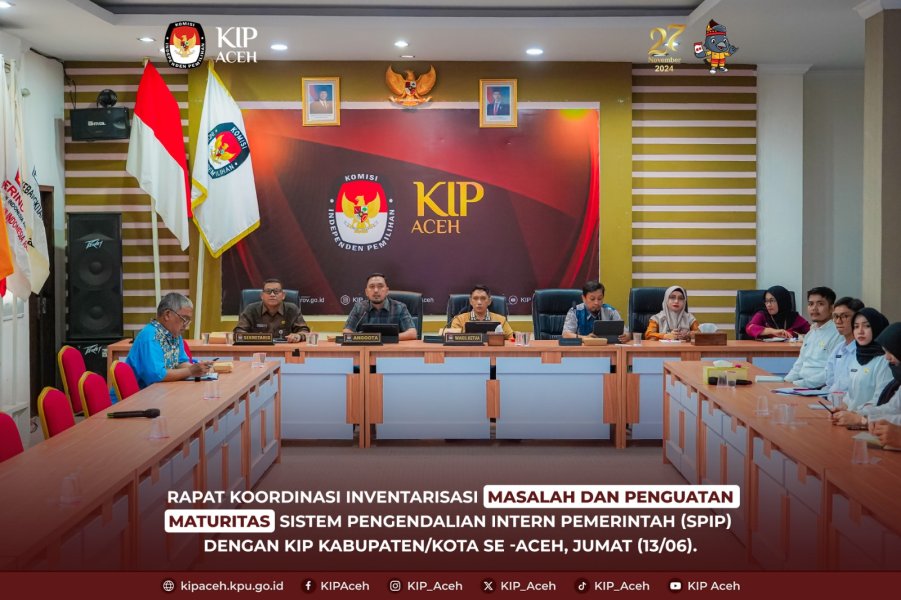 Saleum #TemanPemilih Komisi Independen Pemilihan (KIP) Aceh menyelenggarakan Rapat Koordinasi Inventarisasi Masalah dan Penguatan Maturitas Sistem Pengendalian Intern Pemerintah (SPIP) bersama KIP Kabupaten/Kota se-Aceh, Banda Aceh, Jumat (13/06).