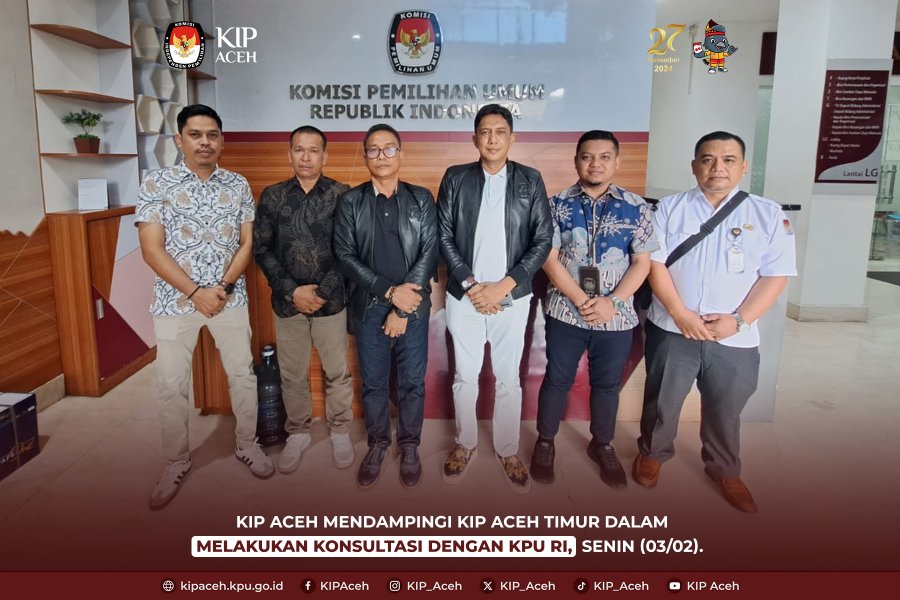Saleum #TemanPemilih Komisi Independen Pemilihan (KIP) Aceh mendampingi KIP Aceh Timur dalam melakukan konsultasi dengan Komisi Pemilihan Umum Republik Indonesia (KPU RI) terkait anggaran untuk Pemilihan Kepala Daerah (Pilkada) tahun 2024. Pertemuan ini berlangsung di kantor KPU RI pada Senin (03/02/2025).