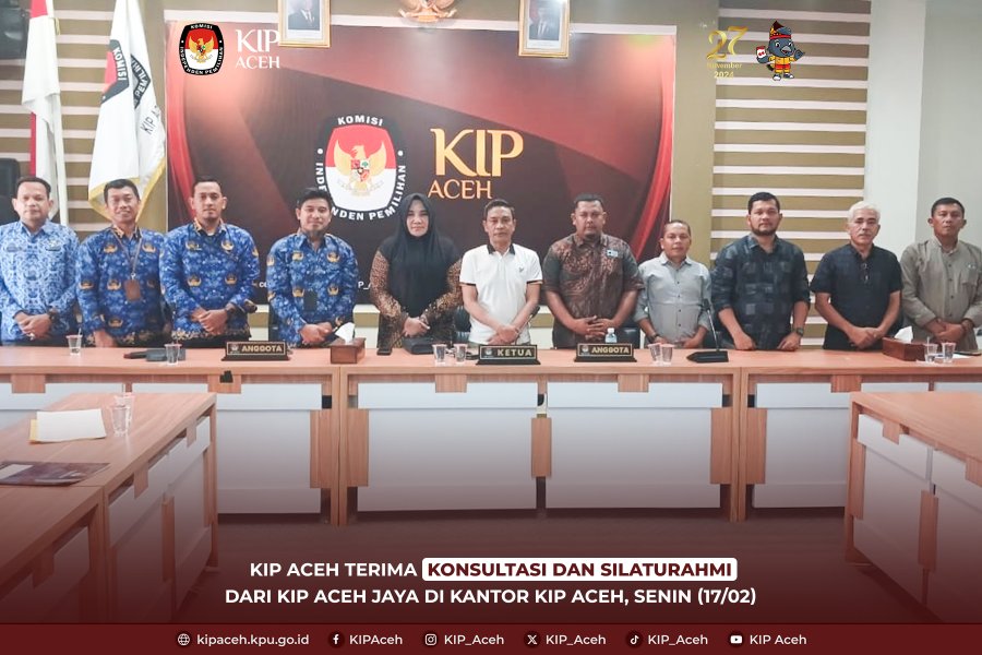 Saleum #TemanPemilih Komisi Independen Pemilihan (KIP) Aceh menerima kunjungan konsultasi dan silaturahmi dari KIP Aceh Jaya di Kantor KIP Aceh pada Senin (17/02). Kunjungan ini bertujuan untuk memperkuat koordinasi dan berbagi pengalaman terkait penyelenggaraan pilkada di daerah masing-masing.
