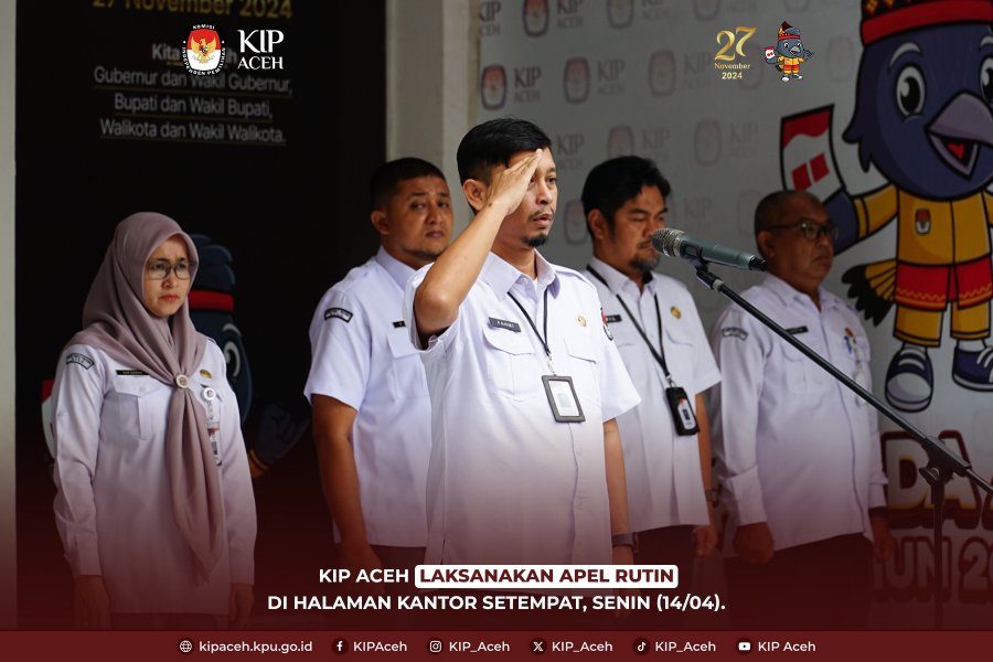 Komisi Independen Pemilihan (KIP) Aceh melaksanakan apel rutin di halaman kantor setempat pada Senin (14/04).
