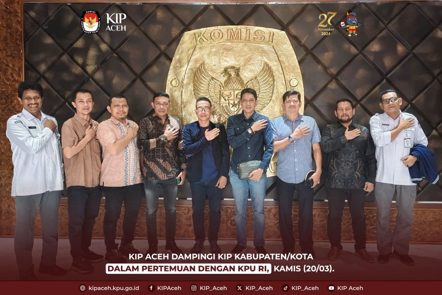 Saleum #TemanPemilih Komisi Independen Pemilihan (KIP) Aceh melakukan pendampingan terhadap KIP Kabupaten/Kota dalam pertemuan dengan Komisi Pemilihan Umum Republik Indonesia (KPU RI) di kantor KPU RI, Kamis (20/03).