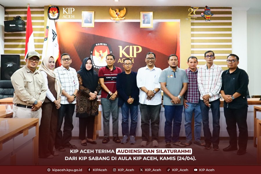 Saleum #TemanPemilih Komisi Independen Pemilihan (KIP) Aceh menerima kunjungan audiensi dan silaturahmi dari KIP Kota Sabang di Kantor KIP Aceh, Kamis (24/04/2025).