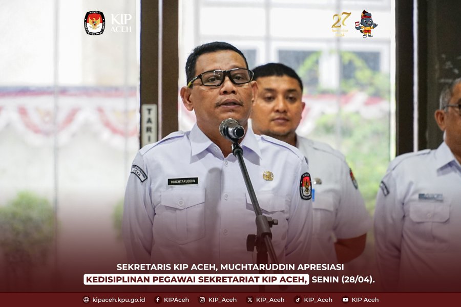 Saleum #TemanPemilih Sekretaris Komisi Independen Pemilihan (KIP) Aceh, Muchtaruddin, mengapresiasi kedisiplinan pegawai sekretariat KIP Aceh dalam apel rutin yang dilaksanakan pada Senin (28/04).