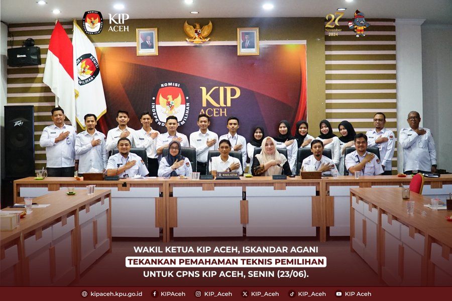 Saleum #TemanPemilih Wakil Ketua Komisi Independen Pemilihan (KIP) Aceh, Iskandar Agani, memberikan arahan teknis terkait penyelenggaraan pemilu kepada Calon Pegawai Negeri Sipil (CPNS) di lingkungan KIP Aceh, Senin (23/06/2025).