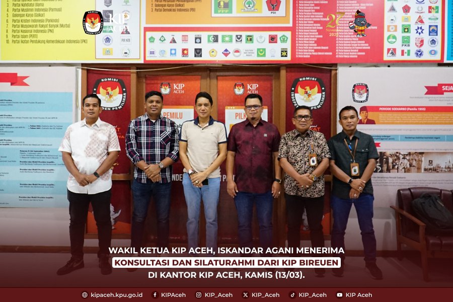 Saleum #TemanPemilih Wakil Ketua Komisi Independen Pemilihan (KIP) Aceh, Iskandar Agani, menerima kunjungan konsultasi dan silaturahmi dari anggota KIP Kabupaten Bireuen di Kantor KIP Aceh pada Jumat (13/03).
